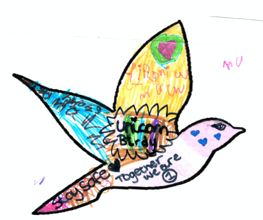 Here in the UK, children from our family network have begun decorating messenger birds, like this one sent by Mackenzie, age 5.