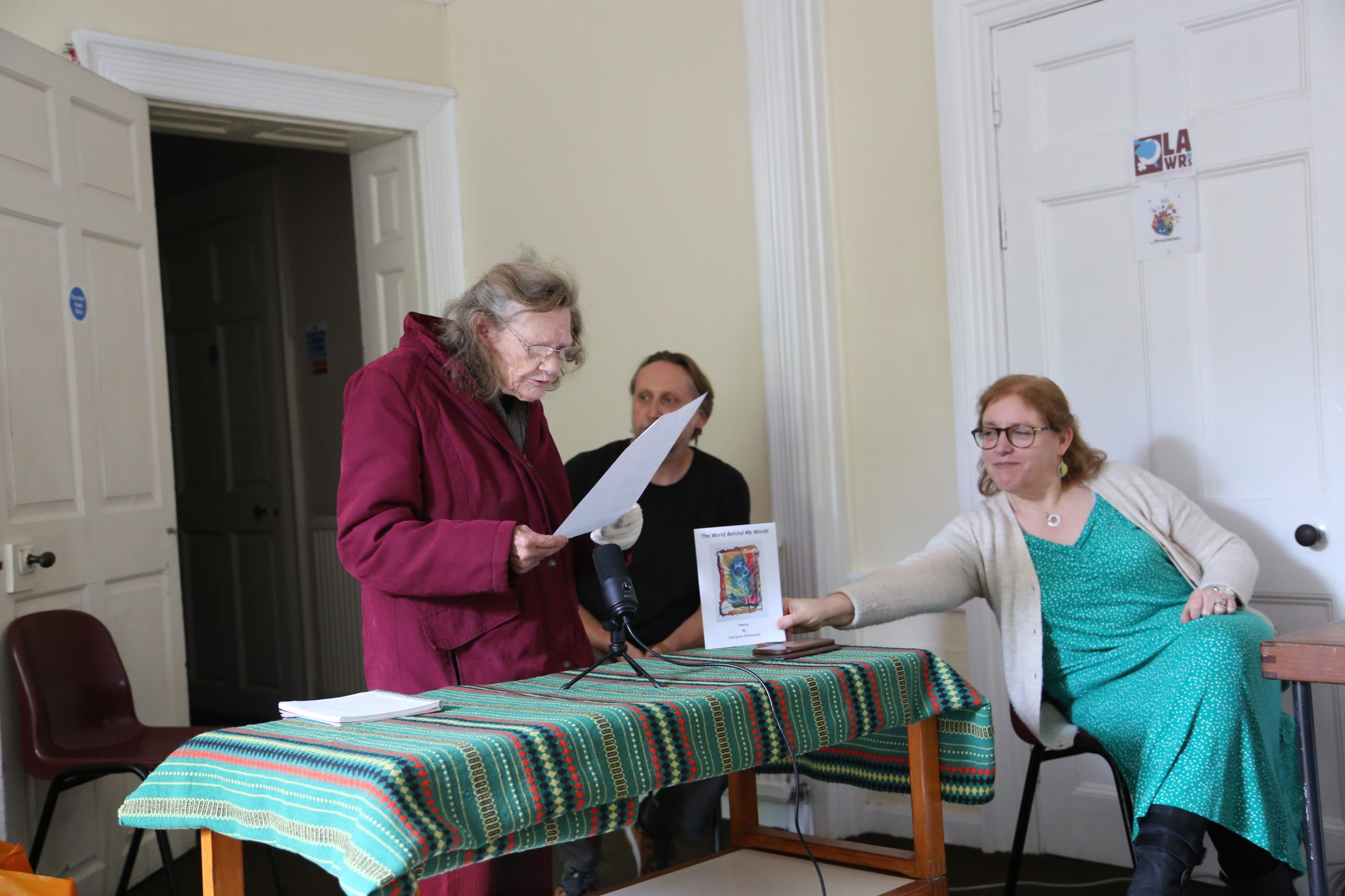 The publishers of The World Behind My Words are Lynn and Dave Morris of the Journeymen Theatre. They first heard Georgina read one of her poems on 17 October 2019 at a commemoration of the United Nations International Day for the Eradication of Poverty. Lynn recalls:
