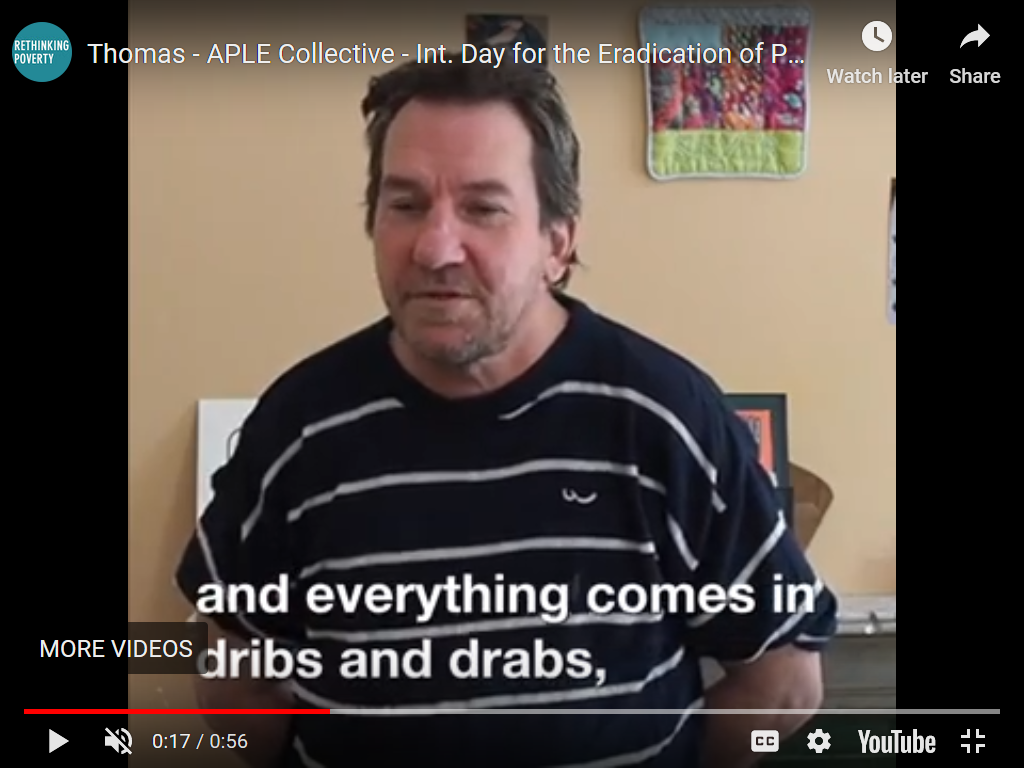 Saturday, 17th October, was the 2020 UN International Day to End Poverty. To mark the occasion, ten activists from the APLE (Addressing Poverty with Lived Experience) Collective recorded videos.